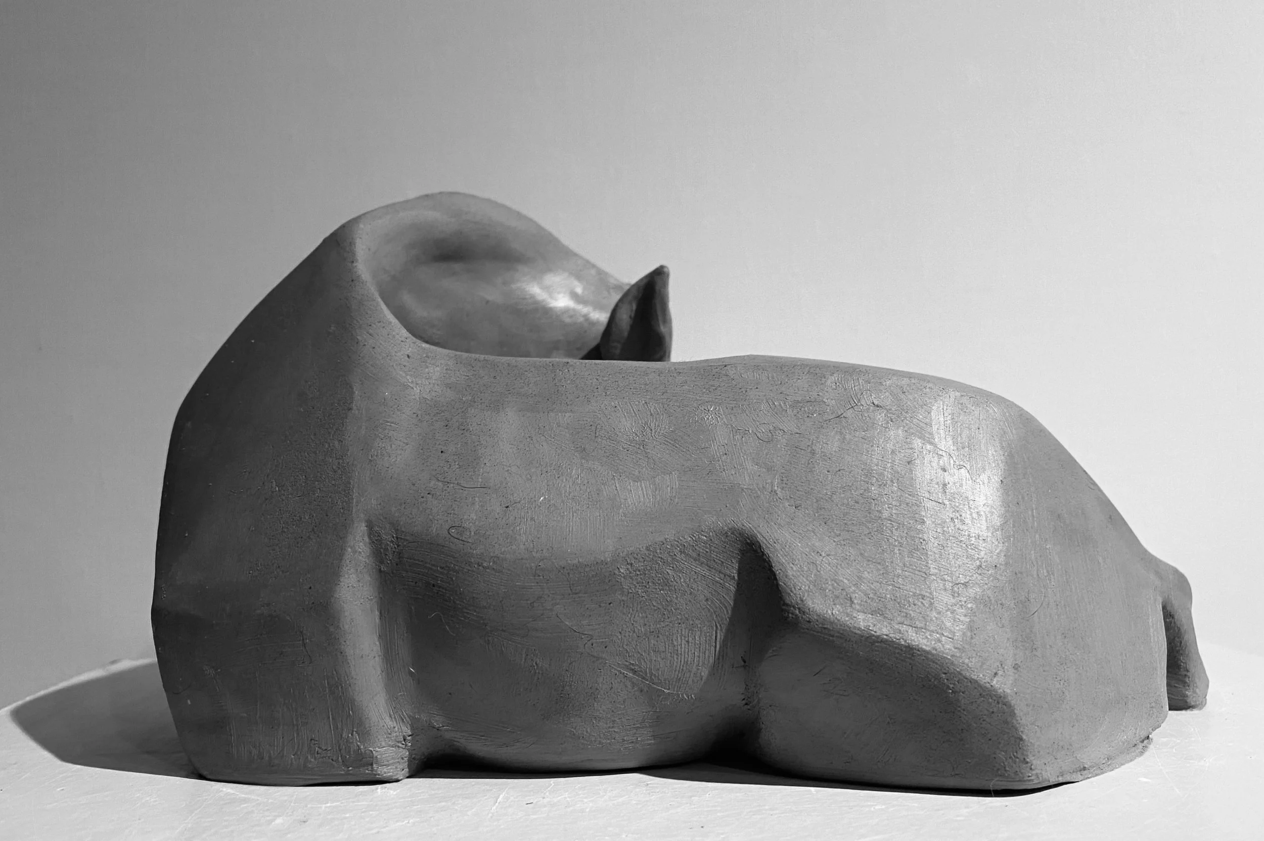 My technique is direct . I like working rapidly, feeling a sense of urgency in capturing the spontaneity and movement of the subject. The feel of clay in my hands, the marks my fingers leave on the surface, are integral to the process. I use tools sparingly, preferring the natural shapes formed by the hand's movement.